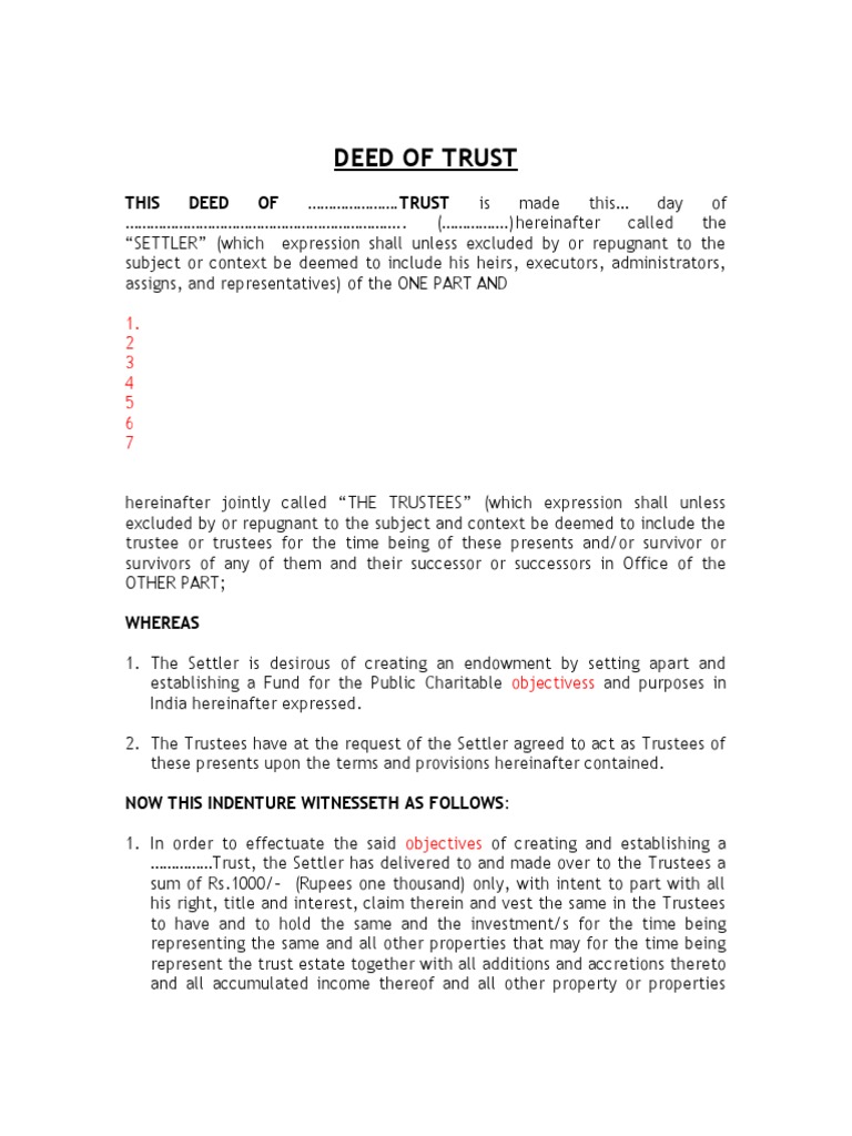 Deed Of Trust Template Free Template Download Customize And Print