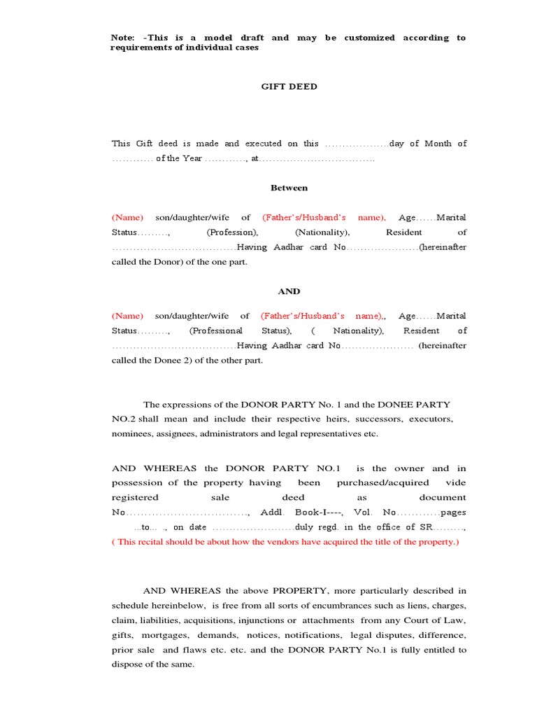 Gift Deed Template