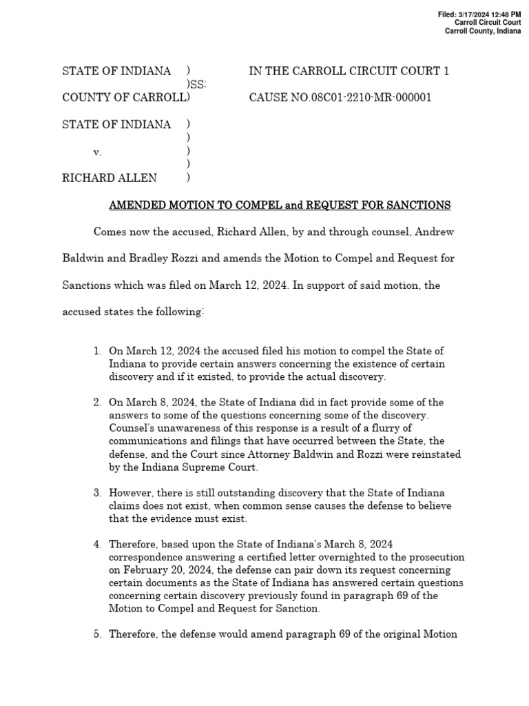 Amended Motion to Compel and Sanctions PDF Discovery (Law) Justice