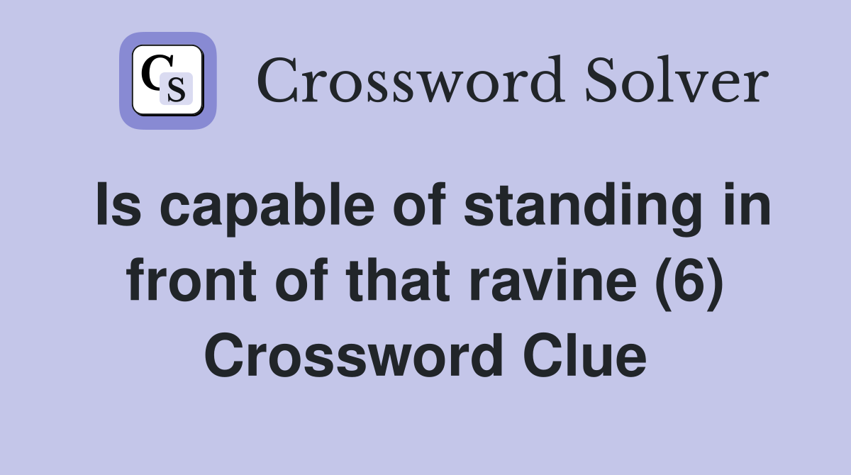 Is capable of standing in front of that ravine (6) Crossword Clue