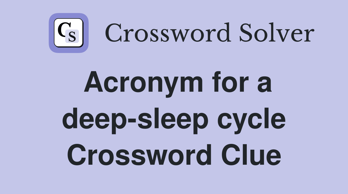 Acronym for a deep sleep cycle Crossword Clue Answers Crossword Solver