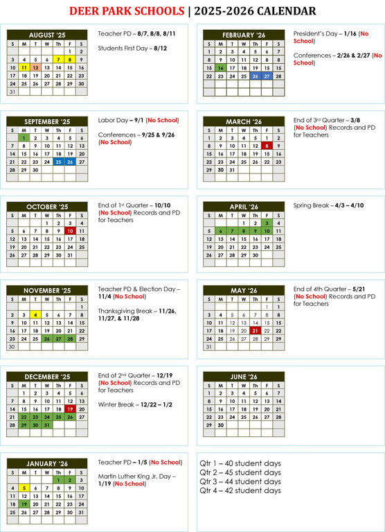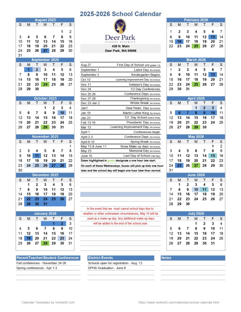 Deer Park Releases 2024 25 2025 26 Annual School Calendars
