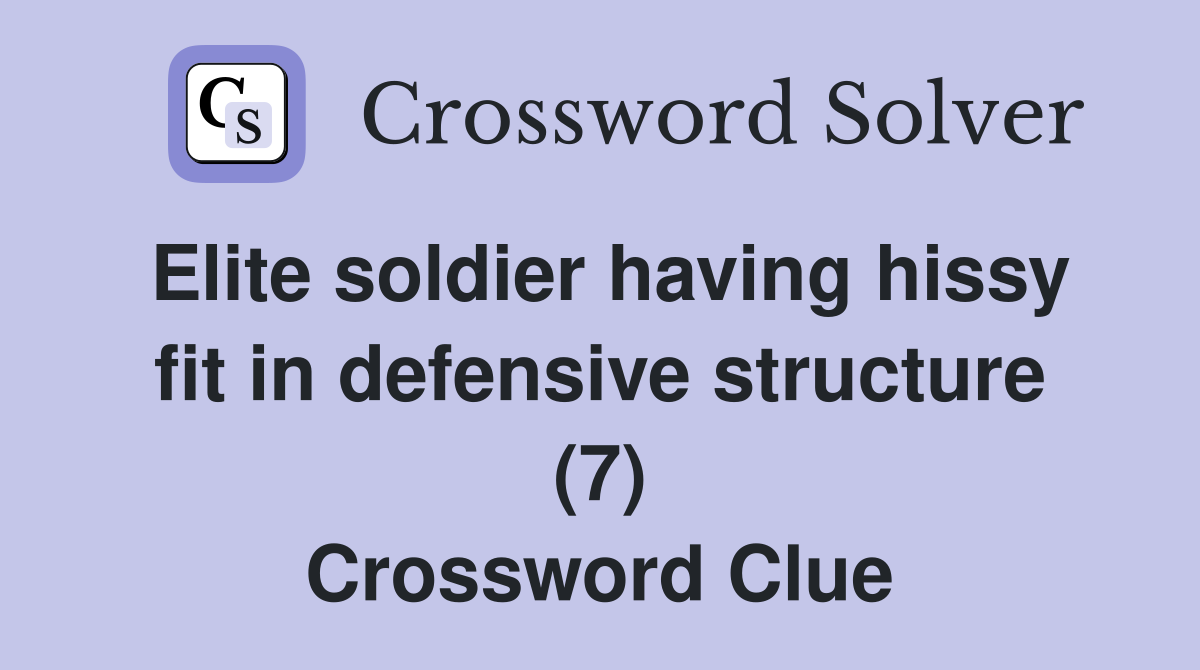 Elite soldier having hissy fit in defensive structure (7) Crossword