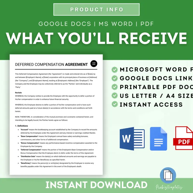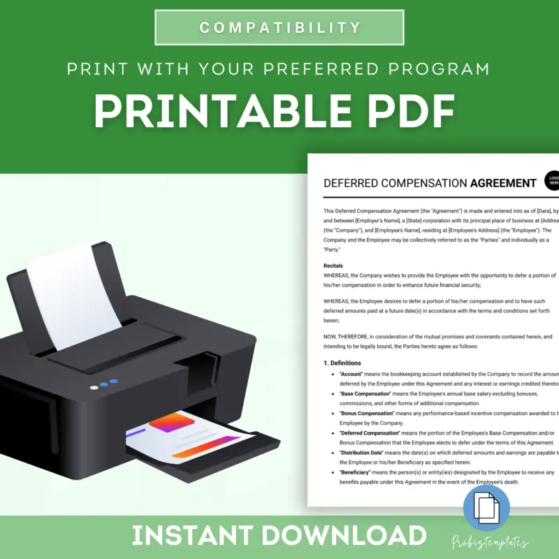 Deferred Compensation Agreement Template (Word PDF) Free Trial