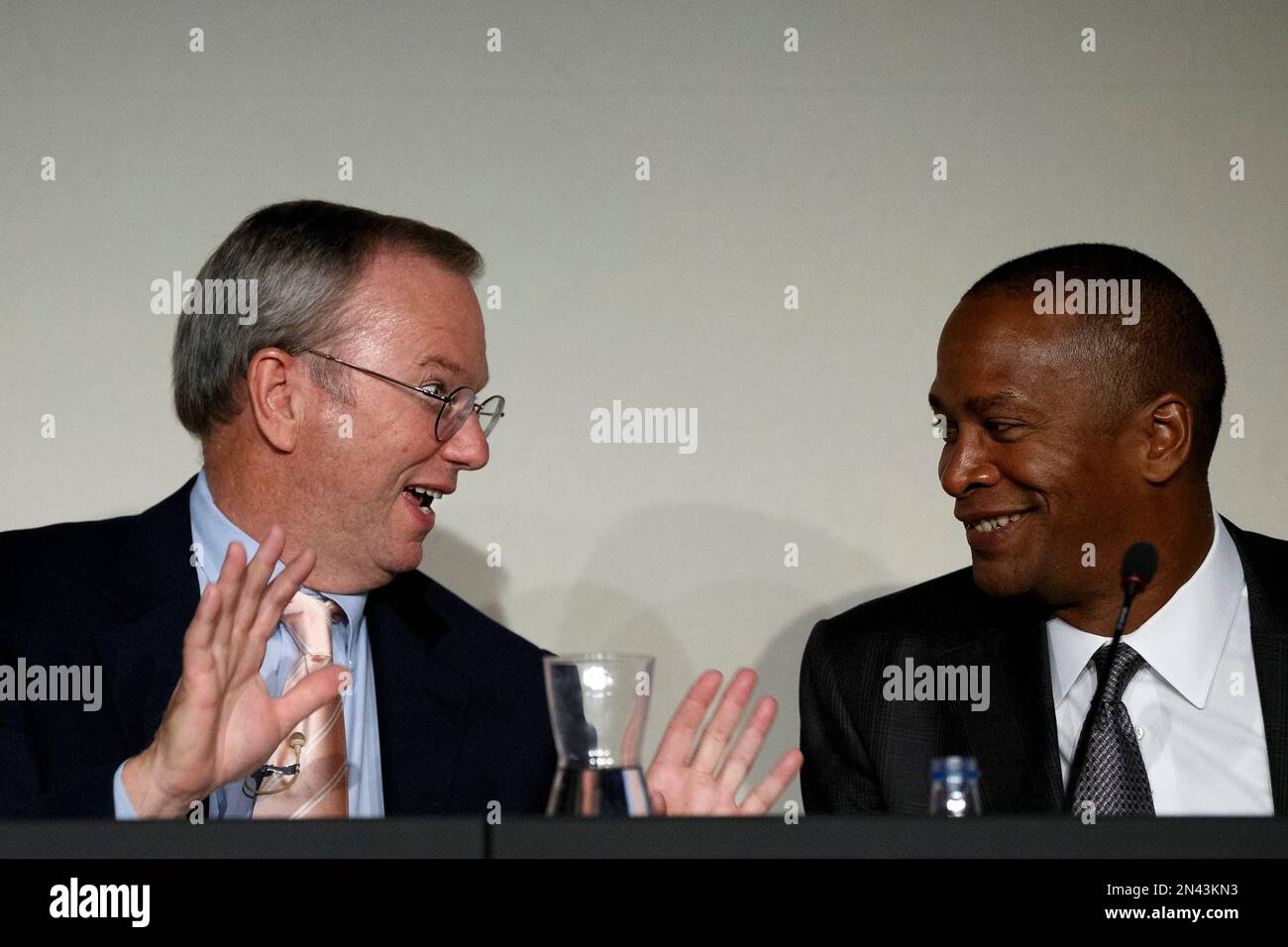 Google Executive Chairman Eric Schmidt gestures while talking with