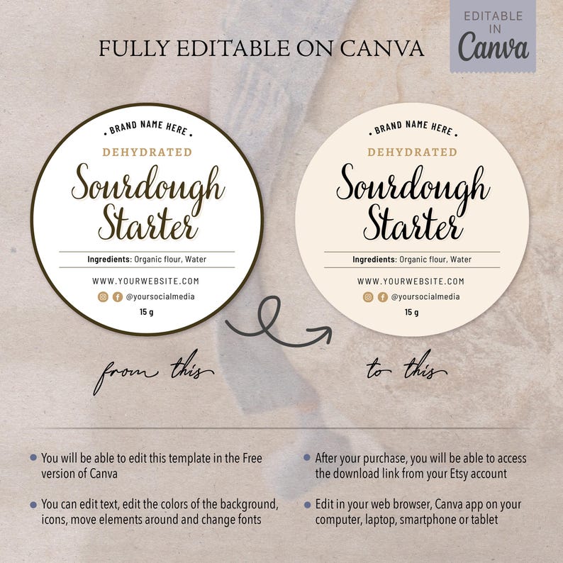 Dehydrated Sourdough Starter Label Template Sourdough Starter