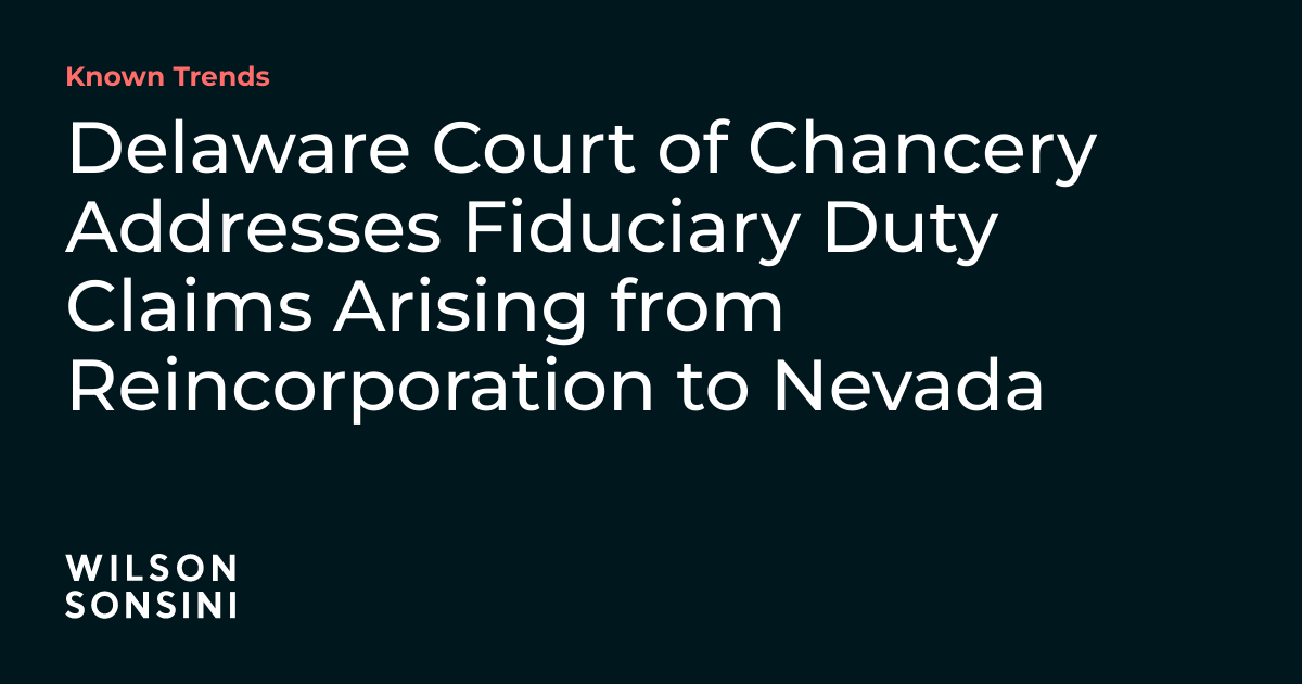 Delaware Court of Chancery Allows Claims for Breach of Both Fiduciary
