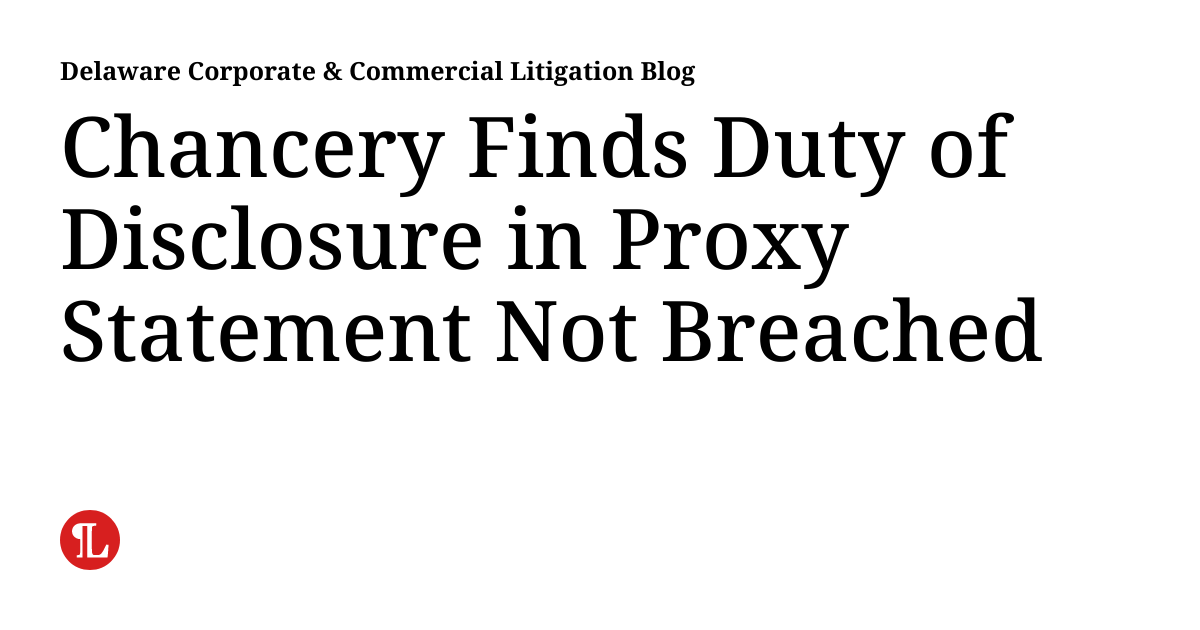 Chancery Finds Duty of Disclosure in Proxy Statement Not Breached