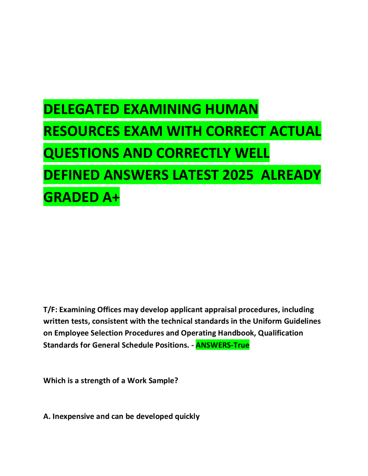 Delegated Examining Quiz Complete and Verified 2025 Exams Business