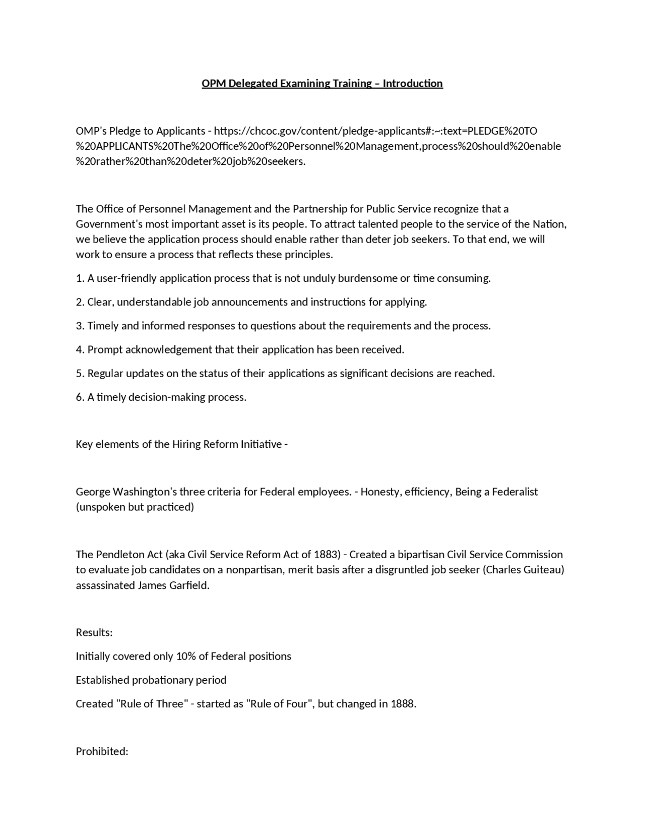 Delegated Examining Operations Handbook Exercises Law Docsity