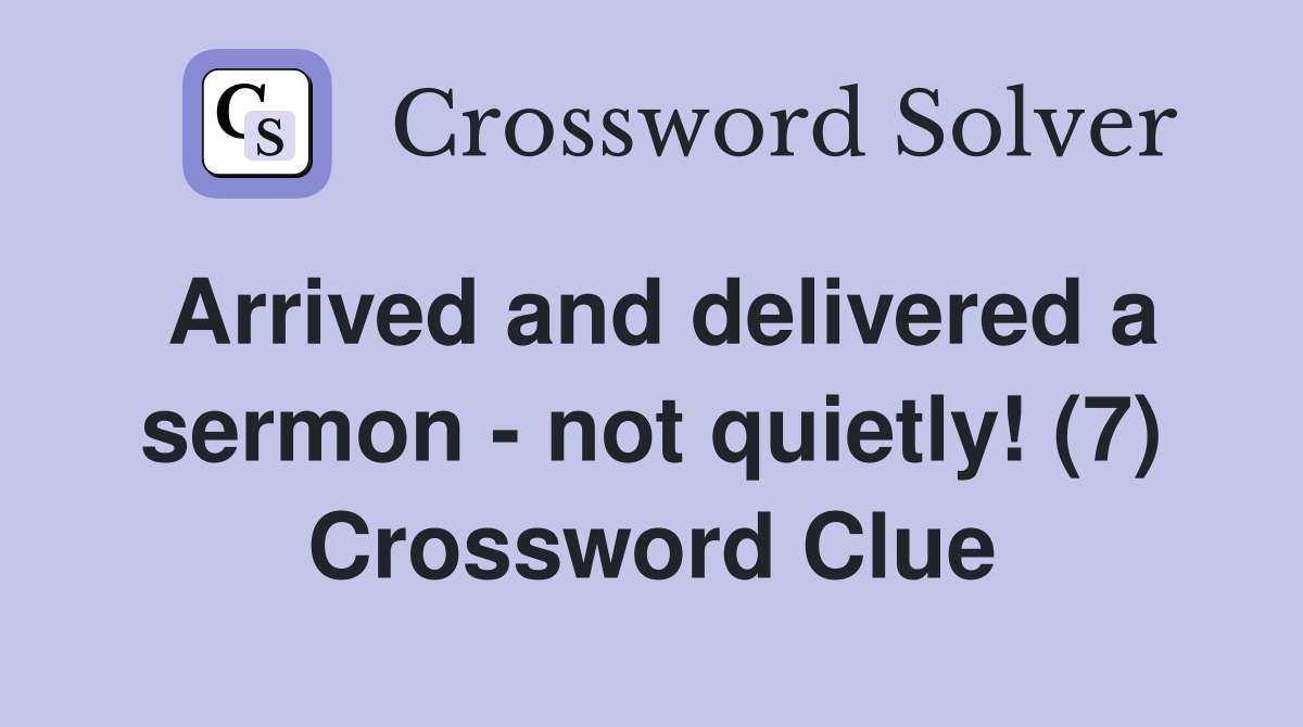Arrived and delivered a sermon not quietly (7) Crossword Clue