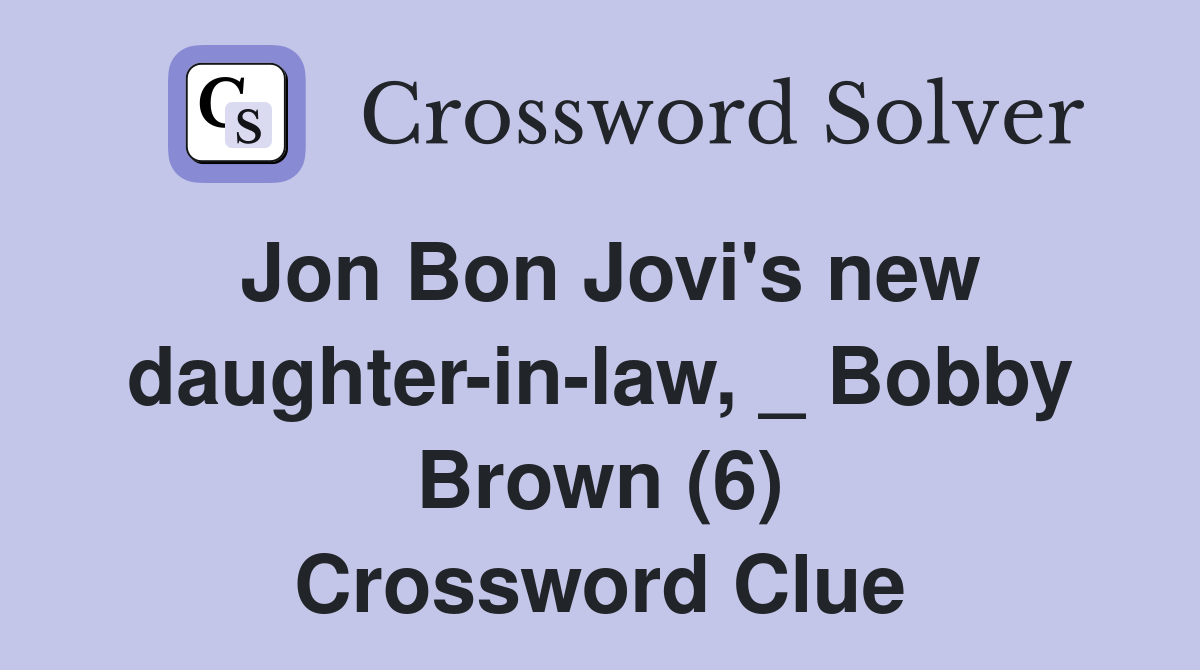 Jon Bon Jovi #39 s new daughter in law Bobby Brown (6) Crossword Clue