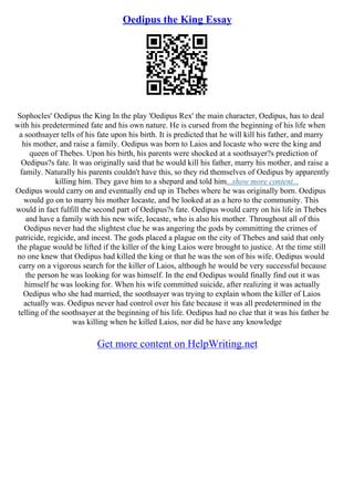 Oedipus The King Essay PDF
