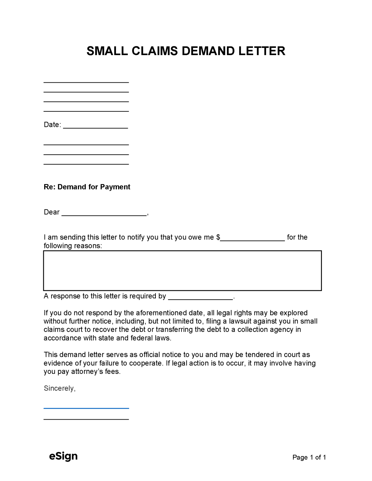 Free Small Claims Demand Letter PDF Word eForms