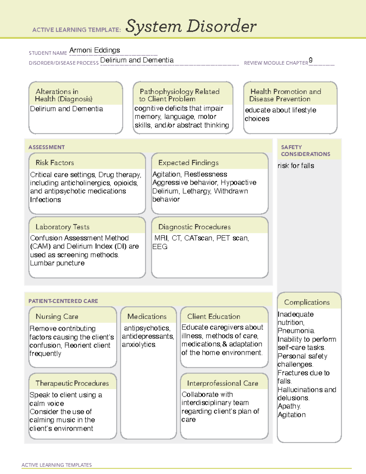 ATI Active learning template on Dementia ACTIVE LEARNING TEMPLATES