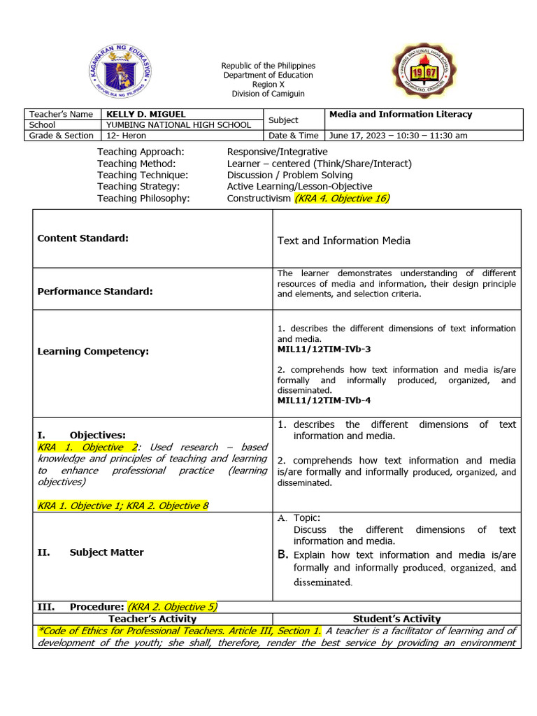 Final Demo Lesson Plan PDF Lesson Plan Language Arts Discipline