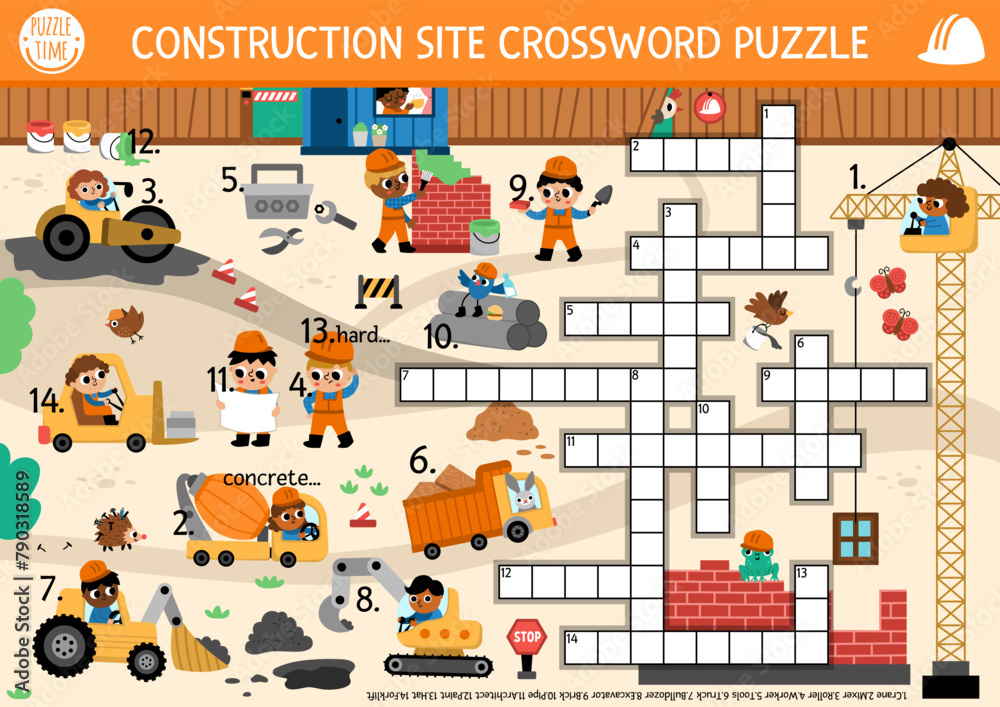 Vector crossword puzzle for kids with construction site landscape Quiz