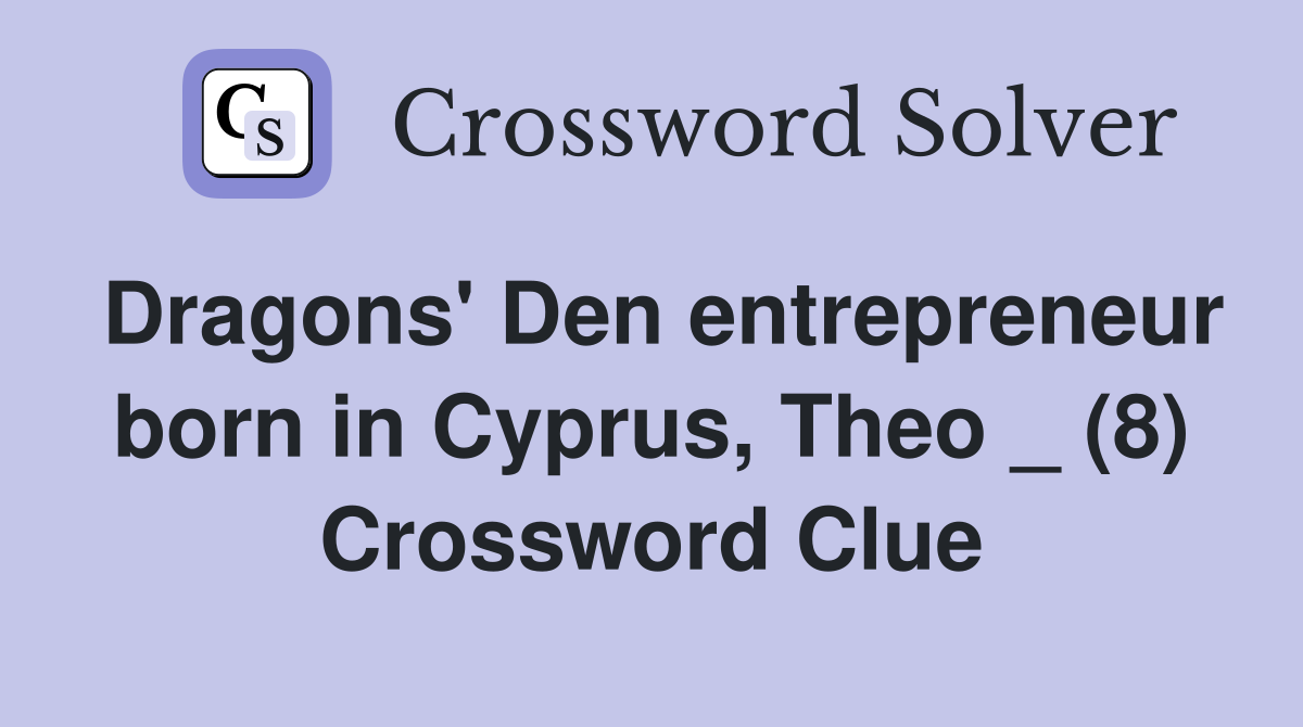 Dragons #39 Den entrepreneur born in Cyprus Theo (8) Crossword Clue