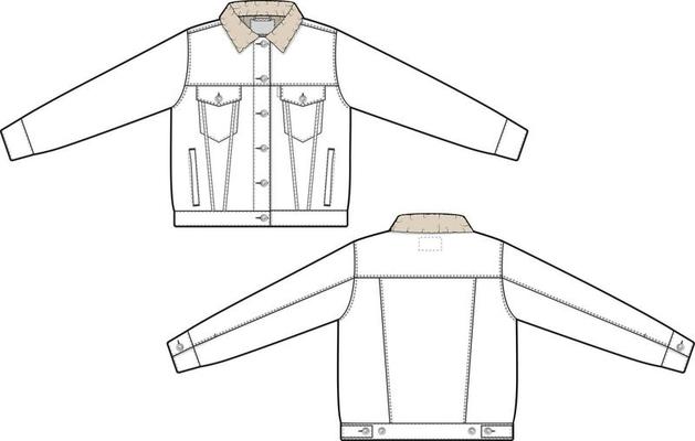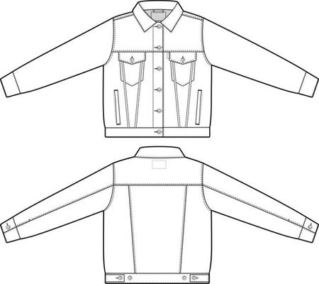 Vector Denim Jacket Flat Sketch for Adobe Illustrator Western Jacket