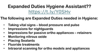 Expanded Duties Dental Assistant Hygiene Certification Functions pdf