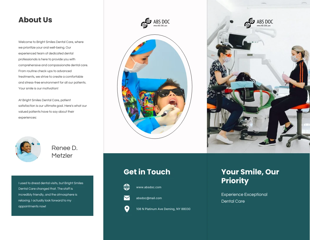 Dental Brochure Template for Dental Clinic Canva Editable Trifold