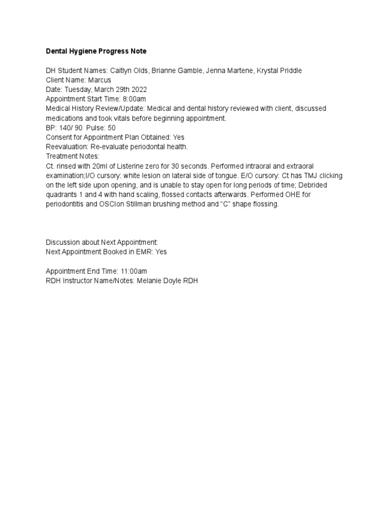 Dental Hygiene Progress Note PDF