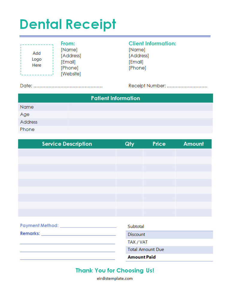 Free Printable Dental Receipt Template