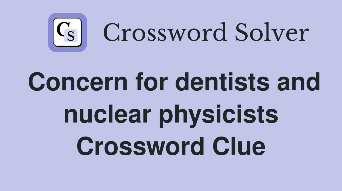 Concern for dentists and nuclear physicists Crossword Clue Answers