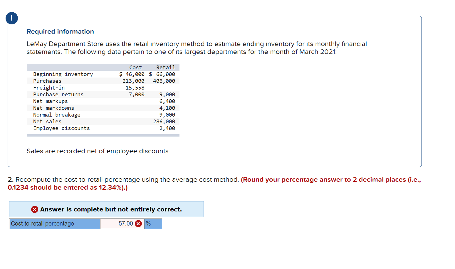 Solved Required information LeMay Department Store uses the Chegg com