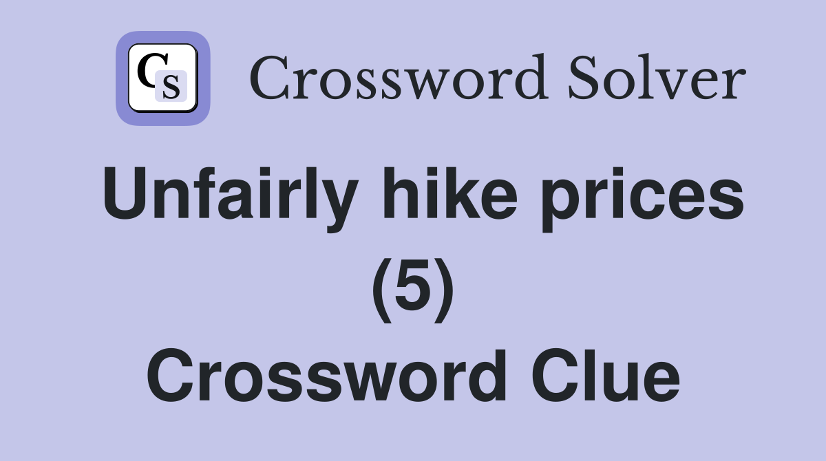Unfairly hike prices (5) Crossword Clue Answers Crossword Solver