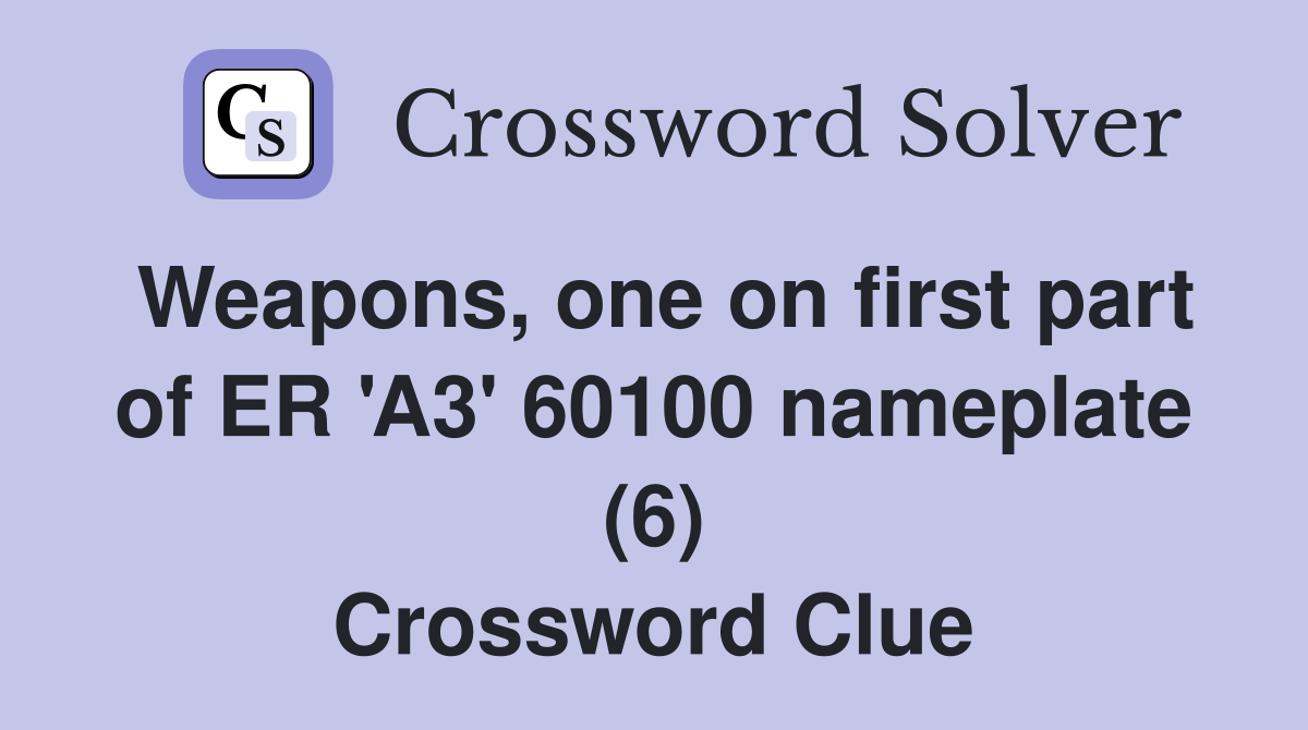 Weapons one on first part of ER #39 A3 #39 60100 nameplate (6) Crossword