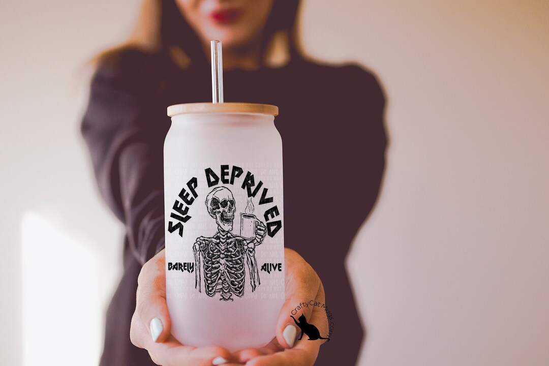 Sleep Deprived Barely Alive Glass Cup Skeleton Glass Cup Etsy