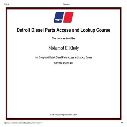 Certification Detroit Diesel Parts access and Lookup Course PDF
