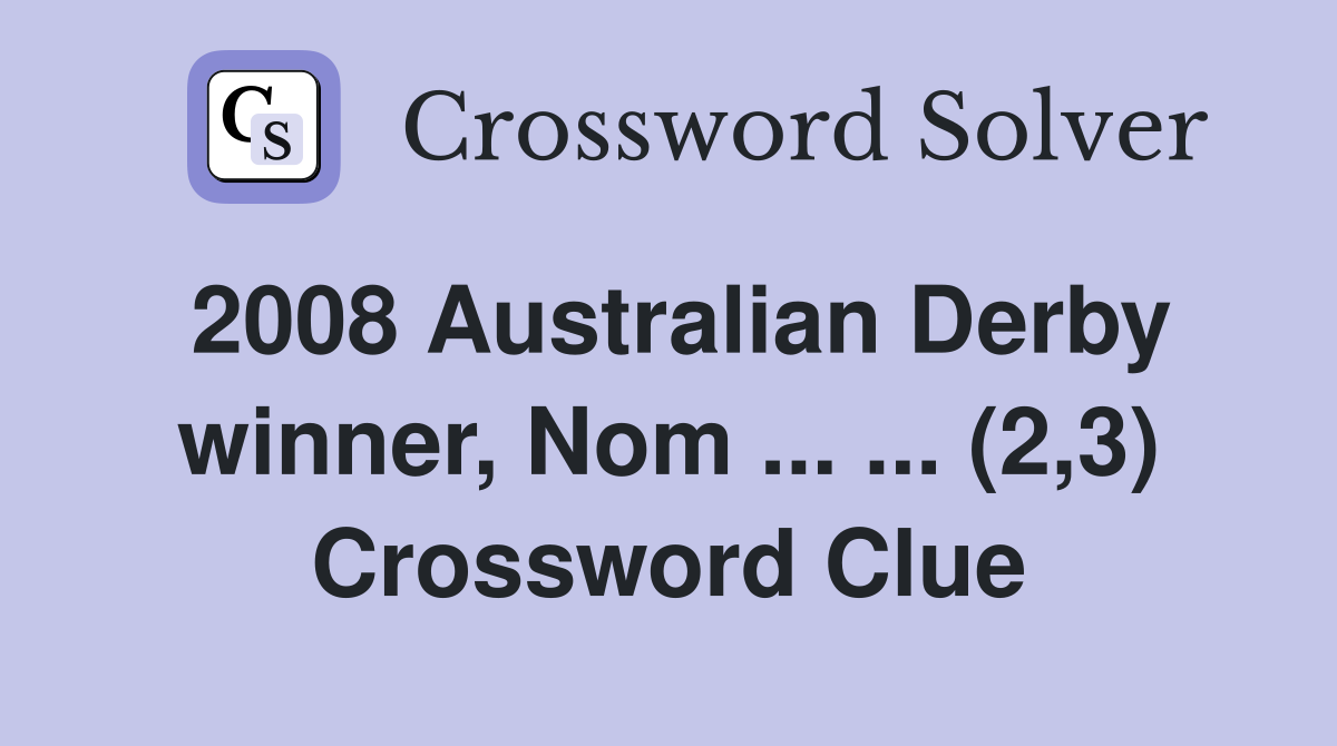 2008 Australian Derby winner Nom (2 3) Crossword Clue