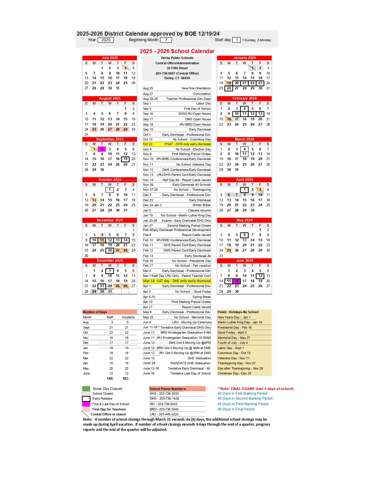 Derby Public Schools CT Calendar 25 26 Revised pdf EduCounty