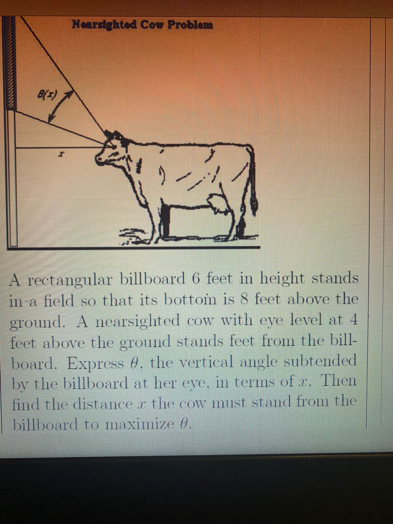 Solved A rectangular billboard 6 feet in height stands in a Chegg com