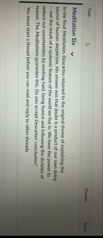 TopicThreadsPostsMeditation SixIn the final Chegg com