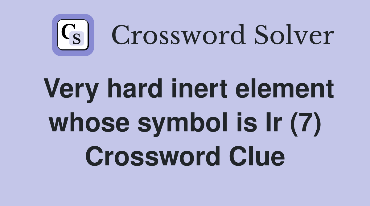 Very hard inert element whose symbol is Ir (7) Crossword Clue Answers