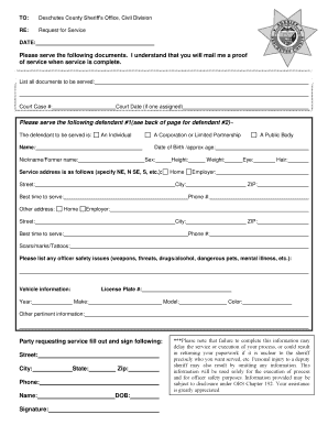 Fillable Online Deschutes County Sheriffs Office Civil Division Fax