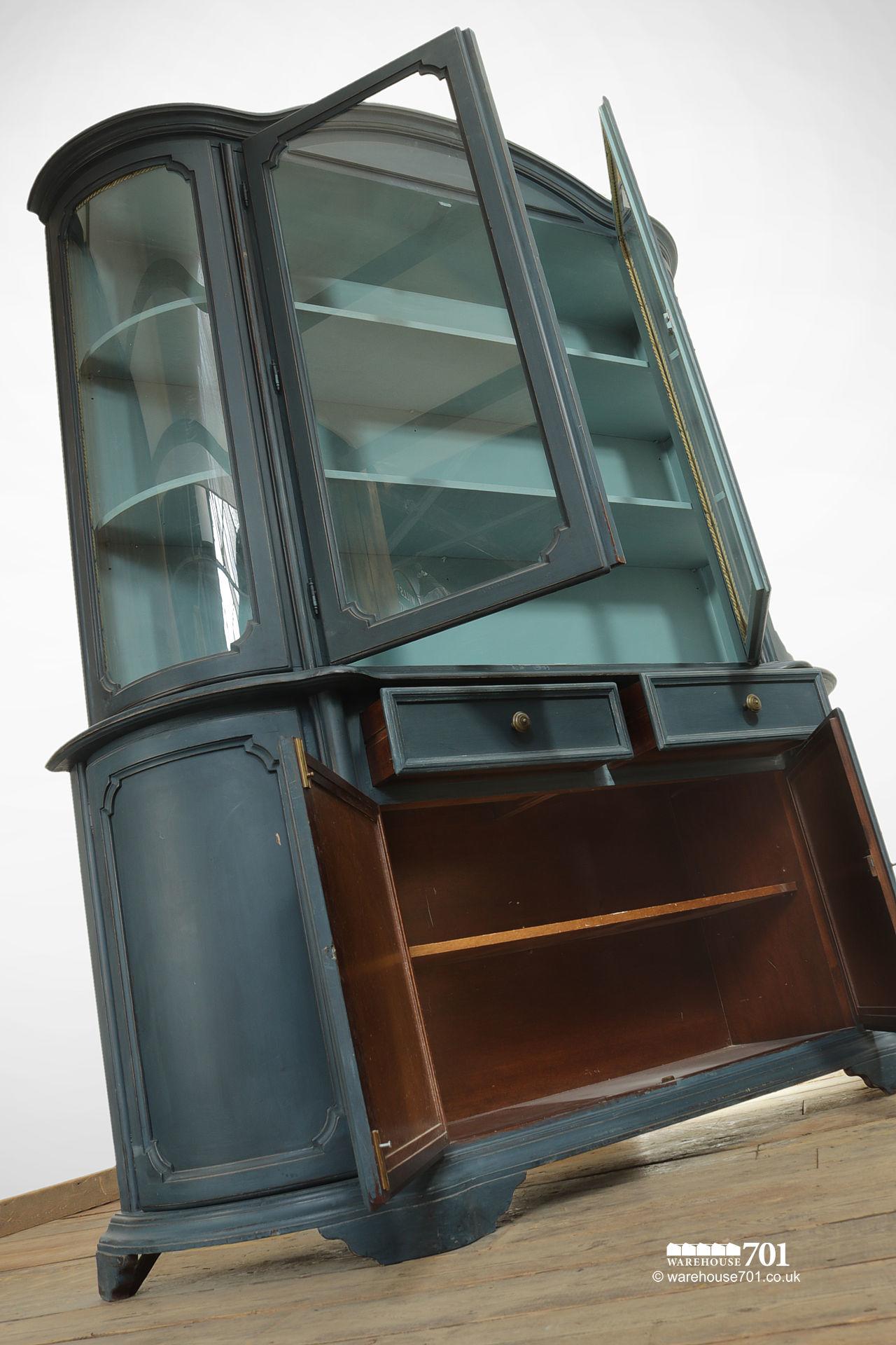 Grand Rounded Glass Blue Painted Display Cabinet and Base