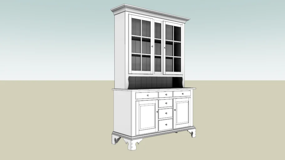 White China Cabinet with Glass Doors and Drawers