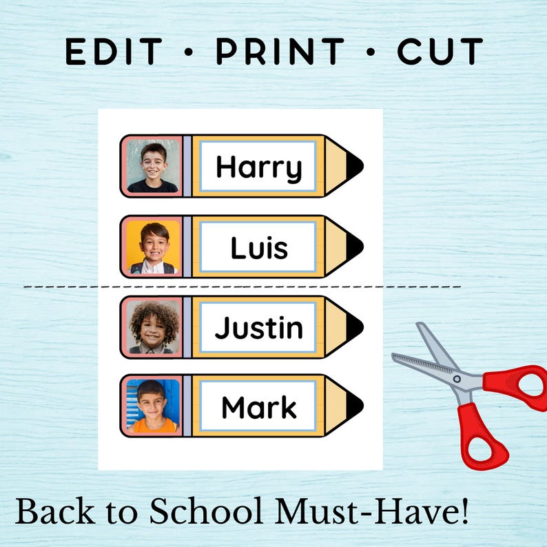 Editable Classroom Name Tags Pencil Name Labels With Photos Printable