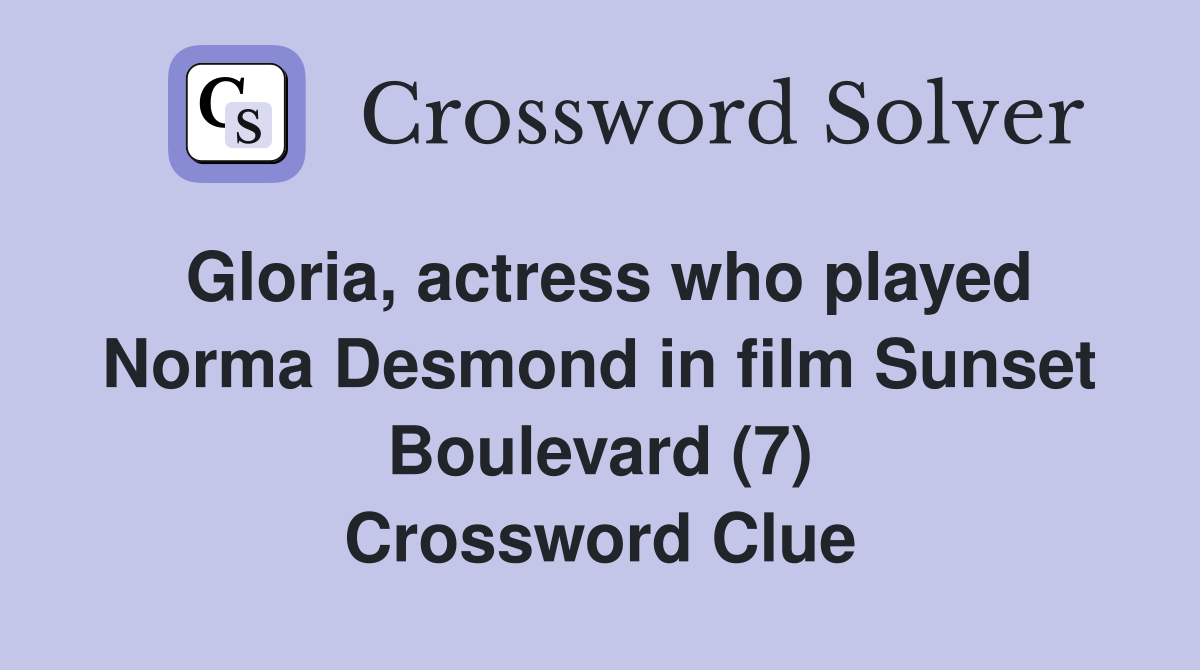 Gloria Sunset Boulevard actress (7) Crossword Clue Answers