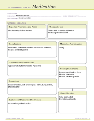 Warfarin ATI template ACTIVE LEARNING TEMPLATES Medication STUDENT