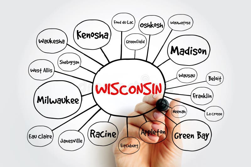 List of Cities in Wisconsin USA State Mind Map Concept for