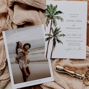 Tropical Palm Tree Wedding Invitation Beach Wedding Invitation
