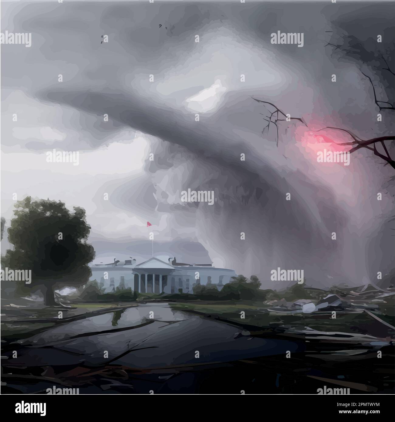Destructive Tornado Near the Track Generative Ai Stock Illustration