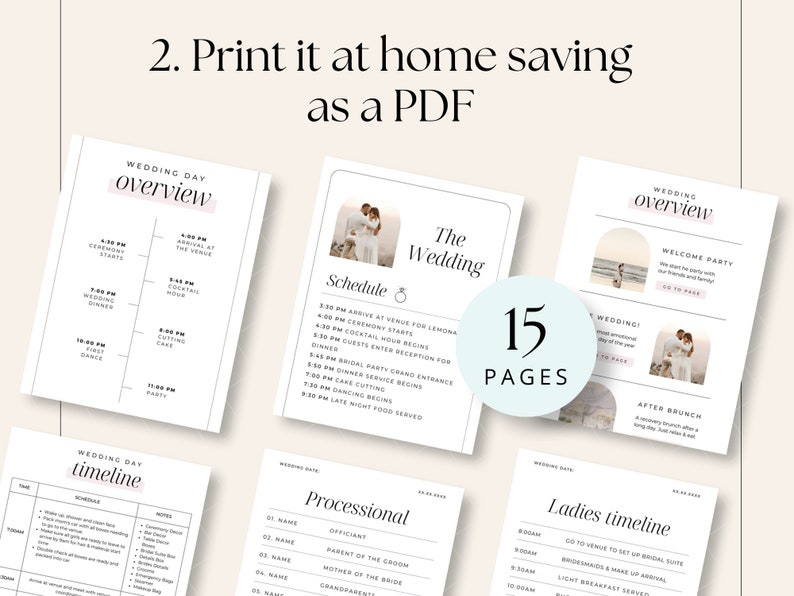 Page 2 Free custom printable wedding timeline planner templates