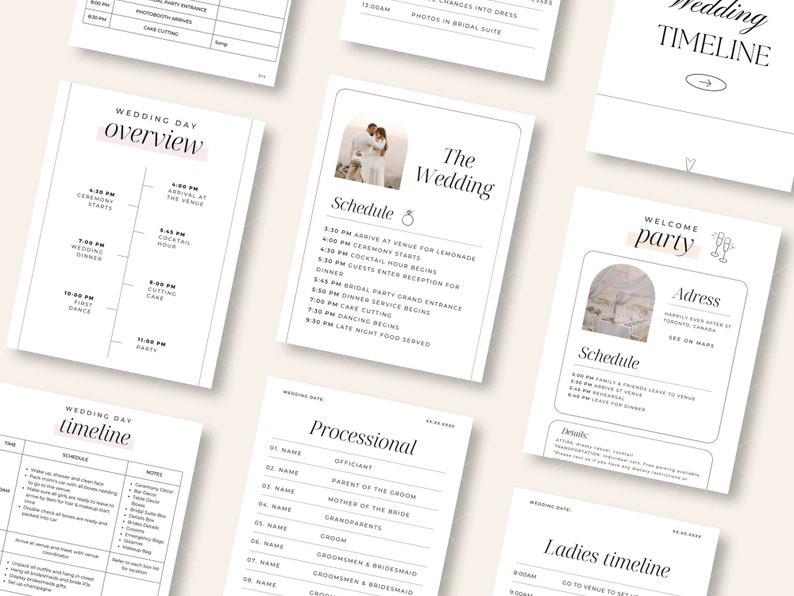 Bridal Party Wedding Day Timeline: Sample Template Guide Plan In