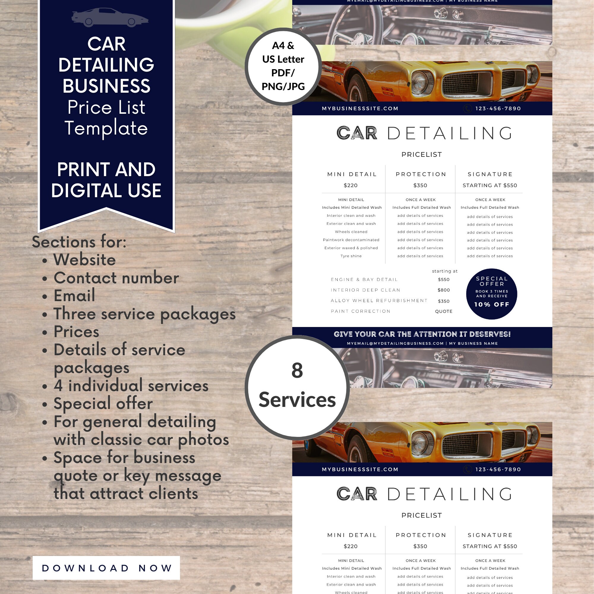 Car Detailing Price List Template Business Editable Pricing Etsy
